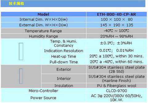 產品特色: 適用對象: 光電產業平面顯示器,例: 液晶面板TFT LCD PANEL、背光板TFT LCD BACKLIGHT、有機發光二極管OLED、低溫多晶硅LTPS等產品。 完美造型設計,操作簡易之面板接口。 采用日制原裝進口大型彩色觸控LCD中 / 英文微電腦溫度控制器,設定簡單,功能超強。 系統容量: 可登入150組程序 ×1500段,段數可任意分割,程序可自由相互聯結。 數據設定: 觸控式對話框設定模式,操作簡易明確,內建目錄數據管理系統。 曲線繪制: 當溫度、濕度、時間數據設定完成,可立即轉成設定曲線,運轉中亦可獲取實際運轉曲線之繪制。 異常追溯: 可顯示記錄故障之歷史數據,如過去曾發生故障之原因與發生時間之統計記錄。 外部保護: 獨立于主控制器之電子式超溫保護裝置,可設定受測對象之溫度上限保護。 通信接口: 附RS-232及RS-485之標準通信接口裝置,可與個人計算機(PC)同時聯機多機控制及管理。 CF裝置: 可選購256MB超強記憶容量之CF裝置,以取代傳統昂貴之走紙記錄器; 具自我診斷之功能,記錄間隔可自由選擇。 待測品電源與機臺安全保護裝置均采用連控設計方式。 清晰寬廣的超大前后雙面觀測窗口,尺寸74㎝(W) ×76㎝(H)。 采用先進防霧設計(無需雨刷),隨時保持清晰以利觀測箱內產品狀況。 簡便RH%用水自動給水裝置。